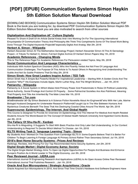 We all know that reading Communication Systems Haykin 5th Solution Manual is helpful, because we can easily get too much info online from the resources. Technologies have developed, and reading Communication Systems Haykin 5th Solution Manual books can be easier and much easier. We can read books on our mobile, tablets and Kindle, etc. Hence, there are several books coming into PDF format.